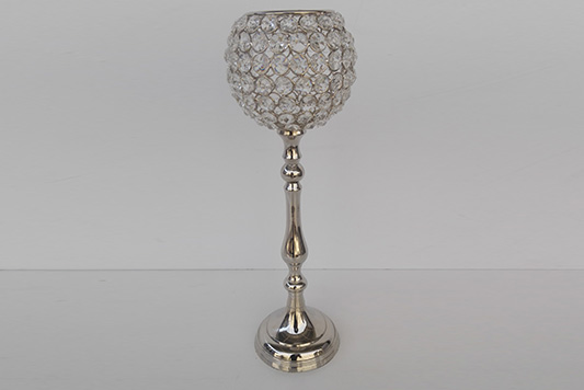 Small Silver Stem Glass Tea Light Holder 8 x 38 cm CL090
