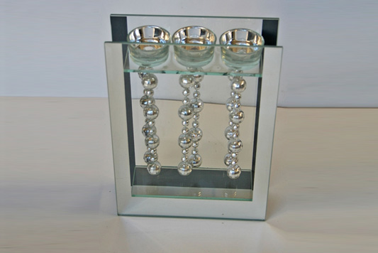 Enquiry about Three Tea Light Holder In Glass With Mirror Ball Effect 28 x 6 cm CL018